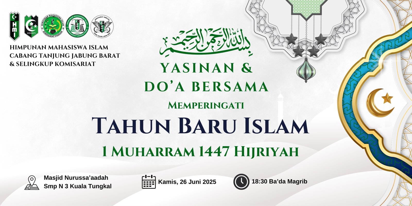 Tahun Baru Islam 1 Muharram 1447 Hijriah bukan hanya momentum pergantian kalender umat Muslim, tetapi juga saat yang tepat untuk merefleksikan makna hijrah secara spiritual dan sosial. Dalam semangat ini, Himpunan Mahasiswa Islam (HMI) Cabang Tanjung Jabung Barat menunjukkan keteladanan sebagai organisasi kader yang tak hanya fokus pada intelektualitas, tetapi juga kepekaan rohani.