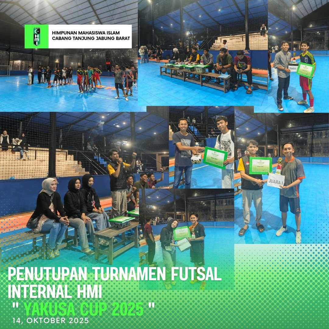 Tanjab Barat — Turnamen futsal internal HMI Yakusa Cup 2025 resmi berakhir pada Selasa, 14 Oktober 2025, bertempat di Lapangan Serba Guna Disparpora.